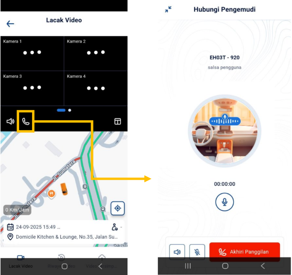 Step 2: Tekan Tombol “Phone” di halaman lacak video dan langsung masuk ke halaman menelpon untuk dilanjutkan dengan process call