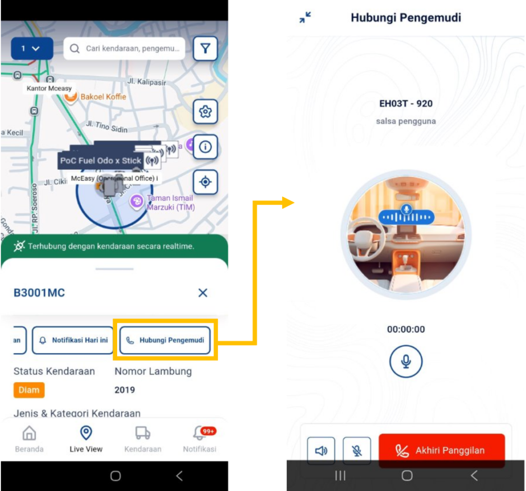- Respon cepat terhadap notifikasi: Dengan tombol Hubungi Driver, pengguna dapat langsung menelepon pengemudi dari notifikasi yang diterima.