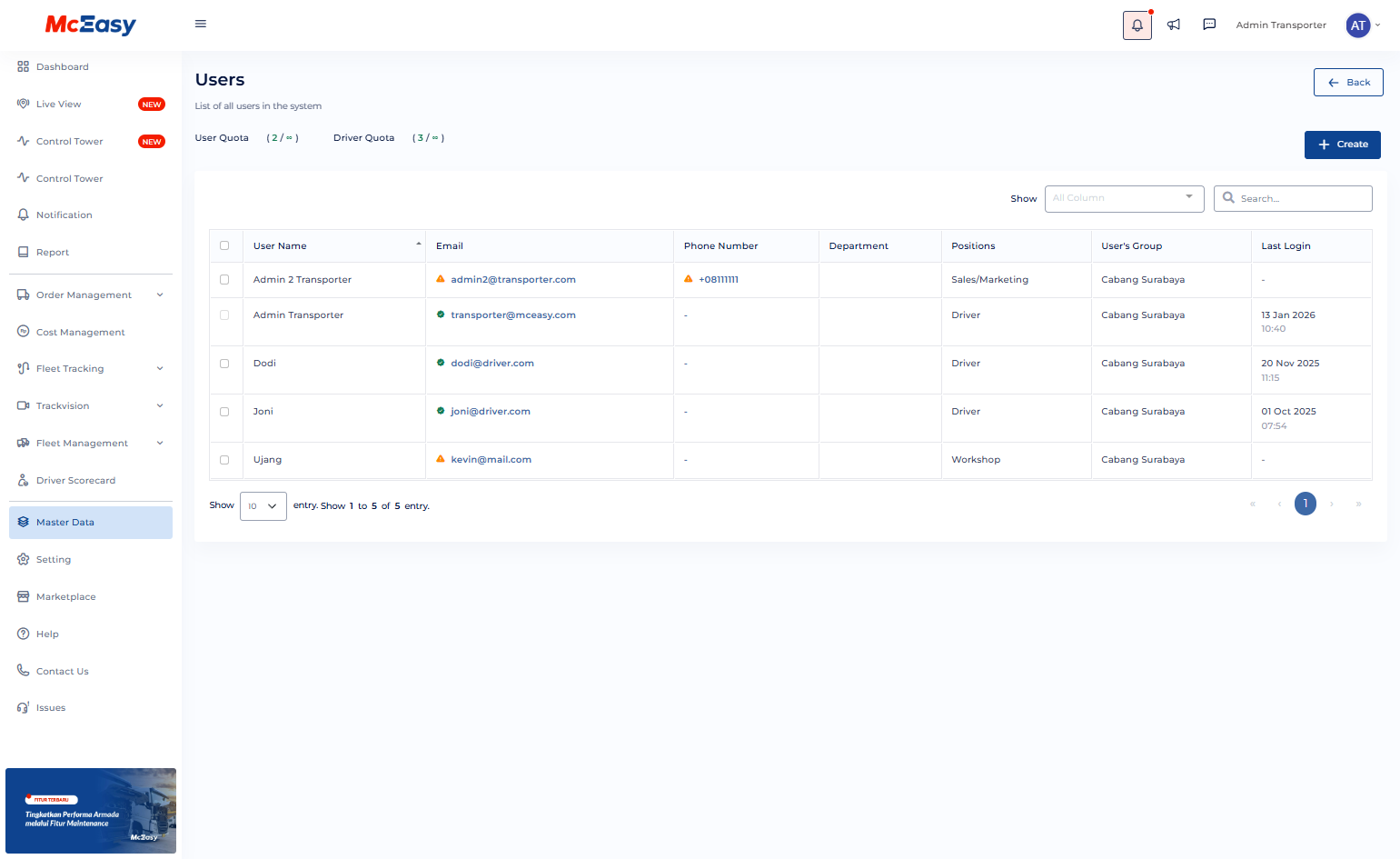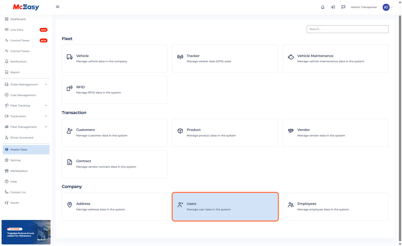 Klik menu Master Data pada platform untuk mengakses data pengguna