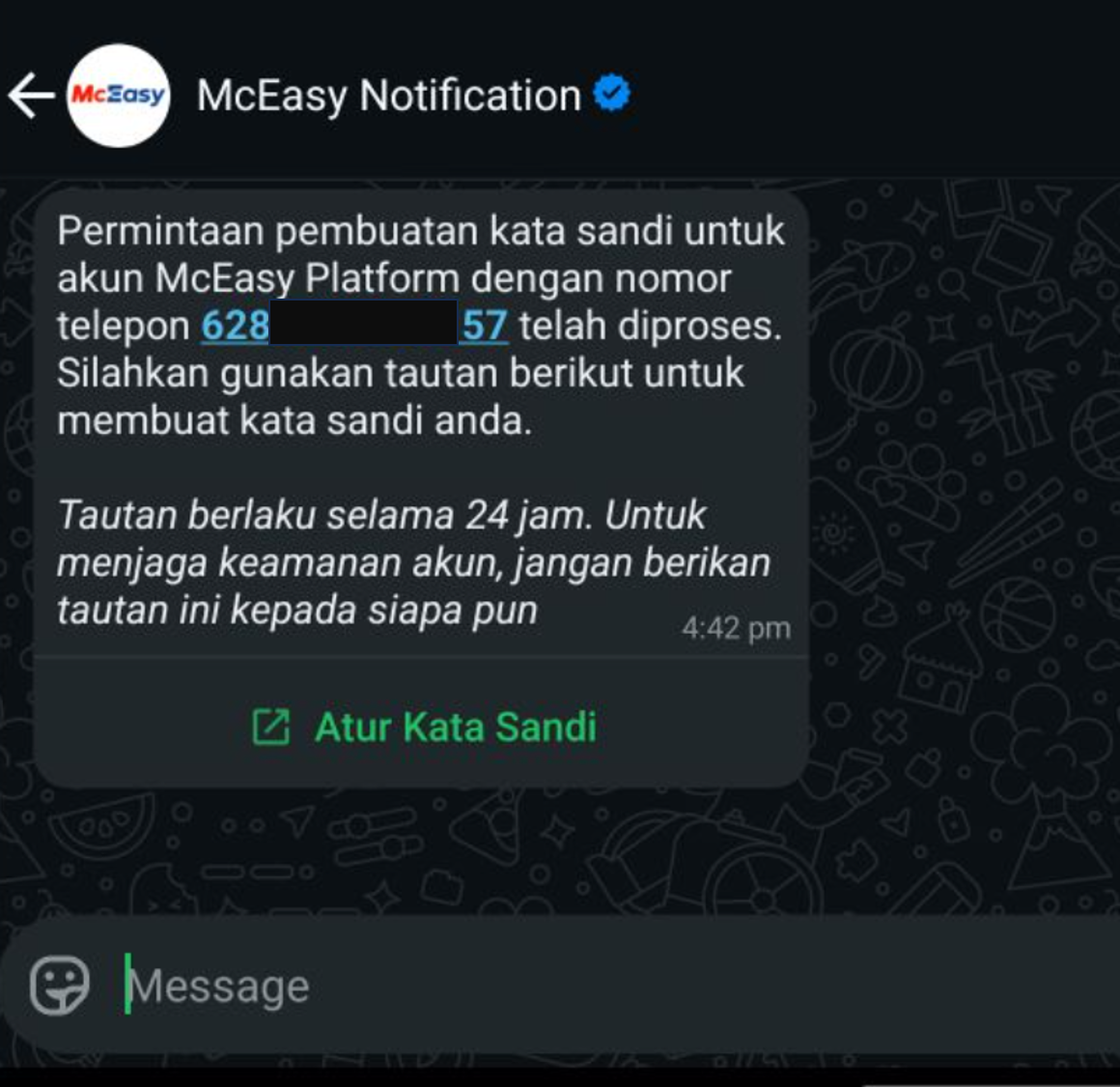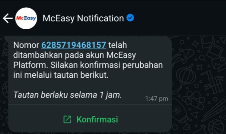 - Apabila administrator mengirimkan verifikasi akses baru maka pesan di whatsapp atau email sebelumnya akan kedaluwarsa