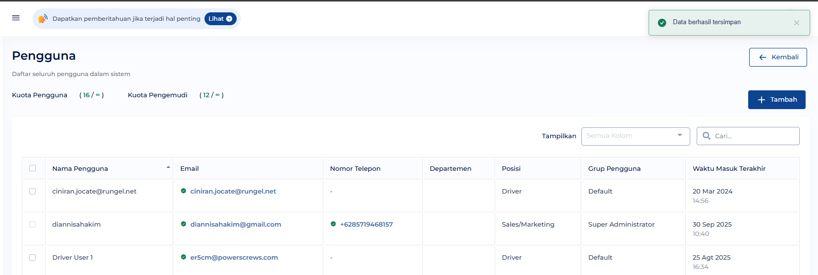 - Perubahan Data Pengguna berhasil tersimpan